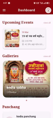 सामुदायिक जीवन को एक साथ जिएँ और संजोएँ। आगामी सामुदायिक आयोजनों, महत्वपूर्ण बैठकों और सभाओं का ट्रैक रखने के लिए विस्तृत कार्यक्रम कैलेंडर का उपयोग करें। हमारी व्यवस्थित फोटो गैलरी के माध्यम से हाल के समारोहों और यादगार पलों को फिर से जीवंत करें। अपनी दैनिक आध्यात्मिक आवश्यकताओं के लिए, ऐप के भीतर सीधे दैनिक पंचांग विवरण तक पहुंच प्राप्त करें। आपकी गोपनीयता और पहुंच हमारे लिए सर्वोपरि है; इसलिए, ऐप सत्यापित सदस्यों के लिए सरल और सुरक्षित ओटीपी-आधारित लॉगिन प्रदान करता है।