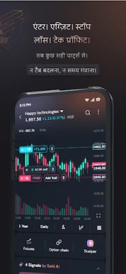 **सही** आपको स्मार्ट ट्रेडिंग के कई अभिनव तरीके प्रदान करता है, जिसमें अद्वितीय 1-क्लिक मोबाइल स्कैल्पर से लेकर सीधे चार्ट से ट्रेडिंग की सुविधा शामिल है। ऑटो ट्रेलिंग स्टॉप लॉस जैसी विशेषताएं आपके ट्रेड्स को सुरक्षित रखती हैं, जबकि **सही AI** और उन्नत मार्केट स्कैनर्स आपको गहरी अंतर्दृष्टि और असामान्य बाज़ार गतिविधियों का पहले ही संकेत देते हैं। F&O ट्रेडर्स के लिए, यह एक विस्तृत ऑप्शन स्कैल्पर, कस्टमाइजेबल ऑप्शन चेन, पेऑफ चार्ट, और एक शक्तिशाली मल्टी-लेग स्ट्रेटेजी बिल्डर प्रदान करता है, जिससे जटिल रणनीतियों का निर्माण और निष्पादन सहज हो जाता है।